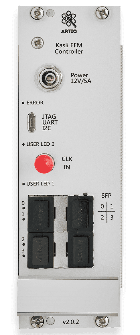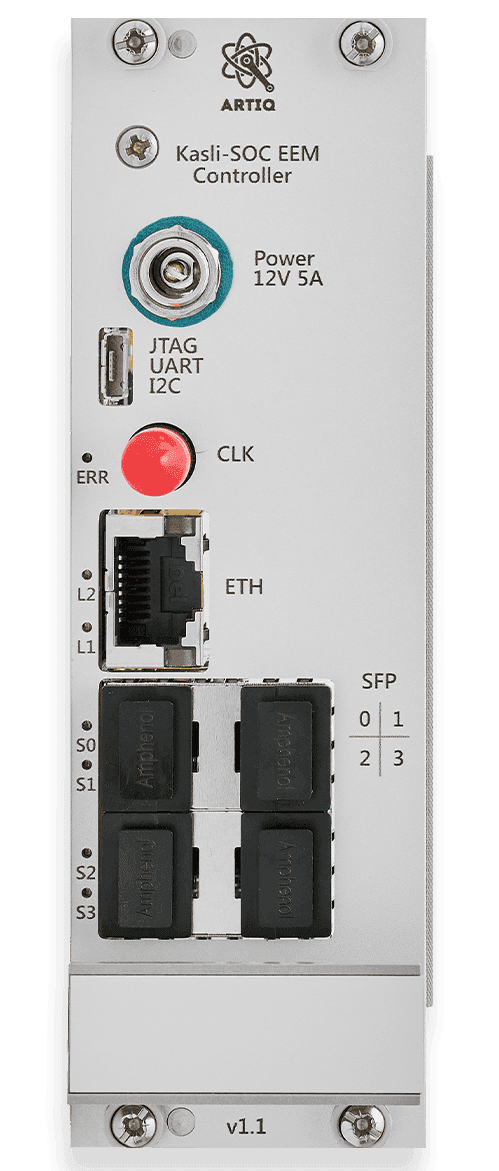 Power Supply: +12 V (barrel connector, same as Kasli-SOC)